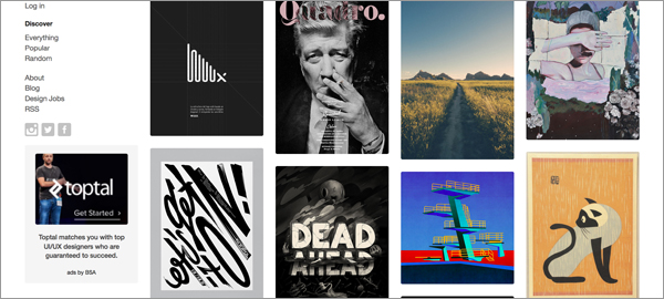 If you’re looking for a site that focuses on beautiful images rather than strict color palettes, head to Designspiration. You can choose up to five different colors in their clean and simple interface, and then view all the images in the site’s database that match the color combination you’ve selected. The hex numbers are listed as titles above.